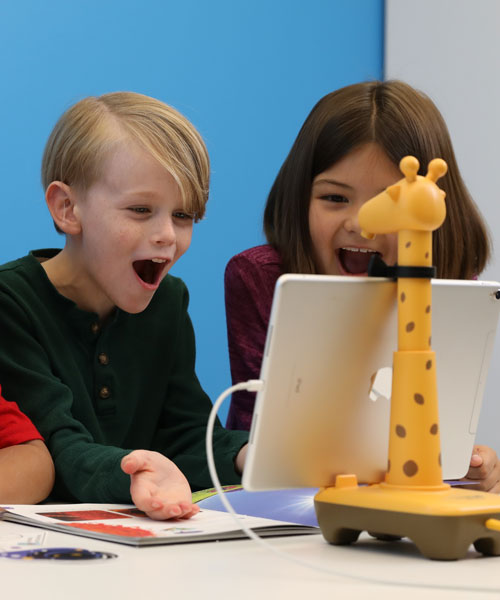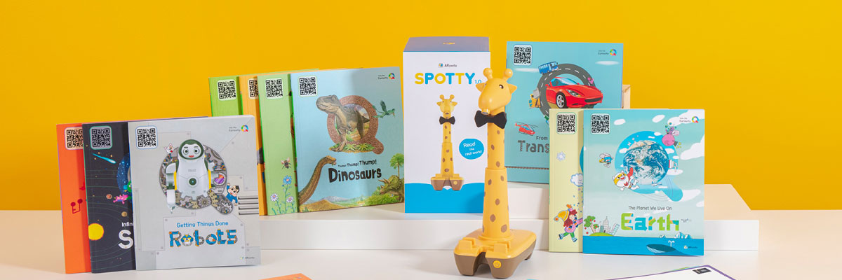 Spotty is an augmented reality literacy device that brings an extra visual element to reading and learning. Simply connect a compatible tablet to the Spotty the Giraffe stand, download the ARPedia app, and the stand’s camera will detect the included books when placed underneath! Kids can use the paper markers to interact with different elements on the page, and see animations and information appear on the tablet screen!