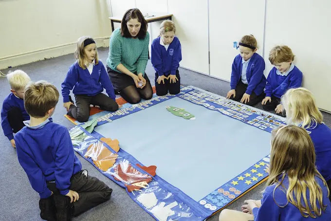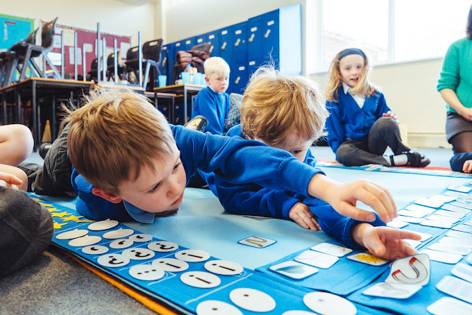 The Mighty Writer set is centred around a large mat, that can either be laid on the floor, or hung on the wall, making it easy for children to gather around and use as a group.