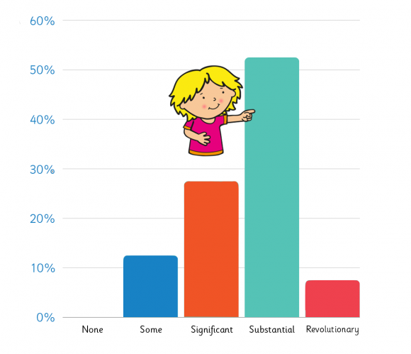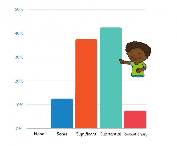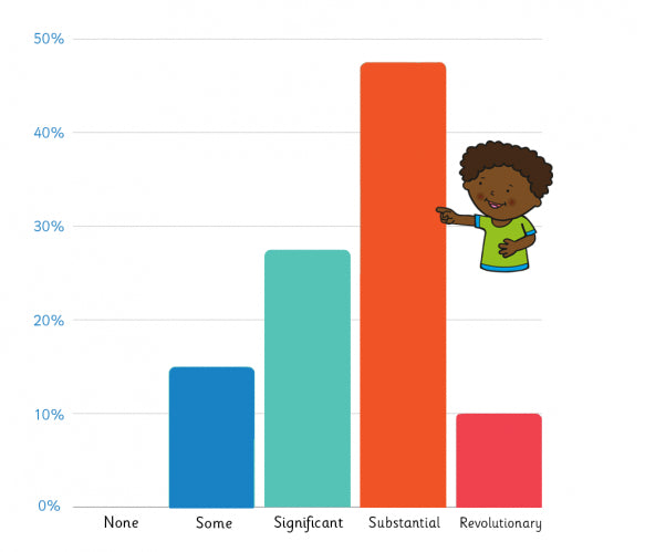 Nearly 88% of respondents reported substantial, significant, or even revolutionary improvements, highlighting remarkable progress or a complete transformation in literacy levels. Every participating school noted meaningful gains across all evaluated areas.