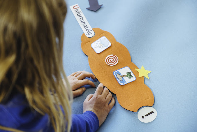 Teachers can then demonstrate the use of sentence openers, conjunctions and punctuation. In addition, symbols to represent adjectives, emotions, verbs and adverbs allow children to visually digest the markers of good grammar.