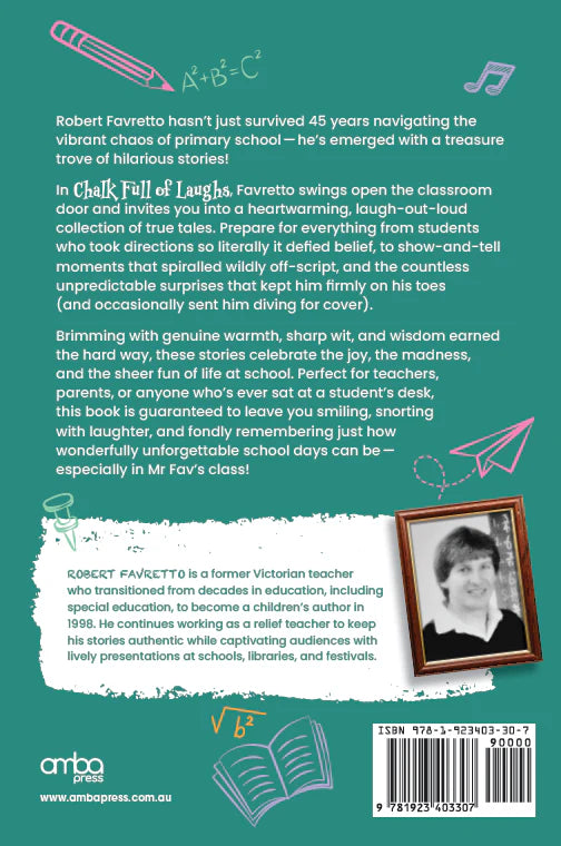 In Chalk Full of Laughs, Favretto swings open the classroom door and invites you into a heartwarming, laugh-out-loud collection of true tales. Prepare for everything from students who took directions so literally it defied belief, to show-and-tell moments that spiralled wildly off-script, and the countless unpredictable surprises that kept him firmly on his toes (and occasionally sent him diving for cover).