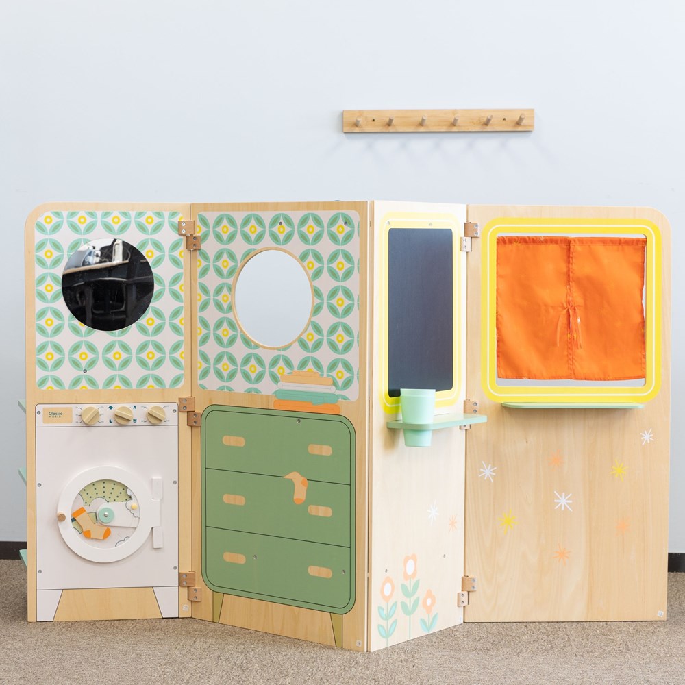 As children role-play household routines, they build social skills, responsibility, and creativity. Turning knobs, opening doors, and interacting with props support fine motor development and problem-solving, while imaginative storytelling comes to life in every room.