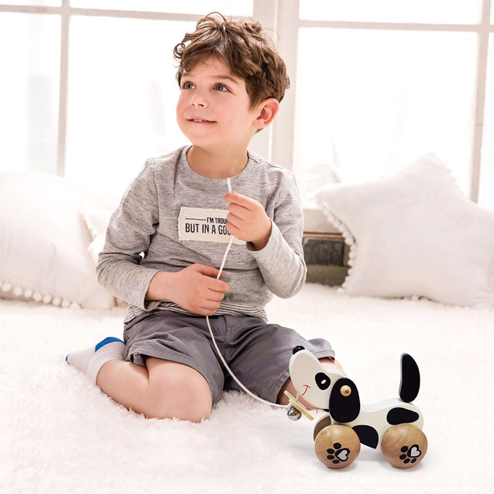 Take your first steps with a best friend by your side! This charming Pull Along Dog is the perfect walking companion for little ones finding their feet. With a friendly face, and a smooth wooden body, this puppy is designed to follow along wherever your child goes.