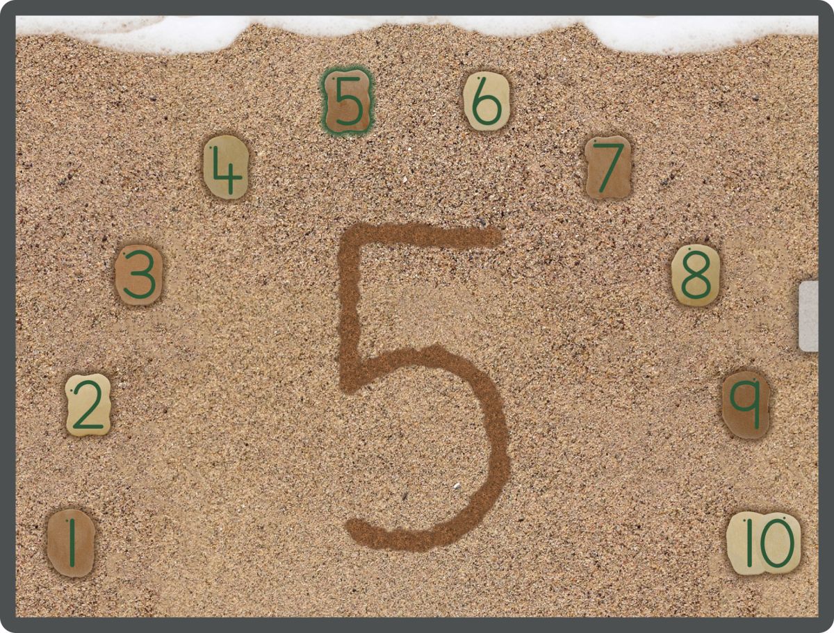 Number Formation App: Following on from the Letter Formation App, this innovative number app is an inviting way to support young children learning about numbers and how to form them. Choose a number from 1 – 20, watch a helpful insect draw it in the sand, and hear the number spoken. Now try to draw the number in its track, watching your own trail form. Choose a new number or activate the tide to come in and wash your attempt away and try again. Teacher options provide the facility to select what the user hears and which numbers they can access for more focused work. Use with our Feels-Write Number Stones for a complete multi-sensory experience, blending physical and digital learning.