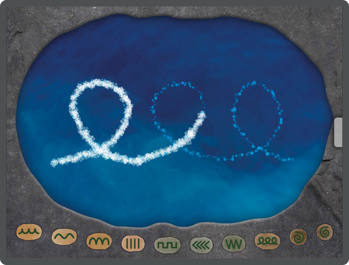 Pre-Writing App: Pre-writing activities help young children, as well older children with special needs, to build fine motor skills, and the language to talk about shape and pattern. This app also supports the early development of good letter formation. Select a pebble from the array and watch its pattern created by the fish in the rock pool. Trace the track of the bubbles with your finger, watching your pattern appear. Choose the same or a different pebble from the array to continue practising. Teacher options provide the facility to select what patterns the user can access for more focused work.