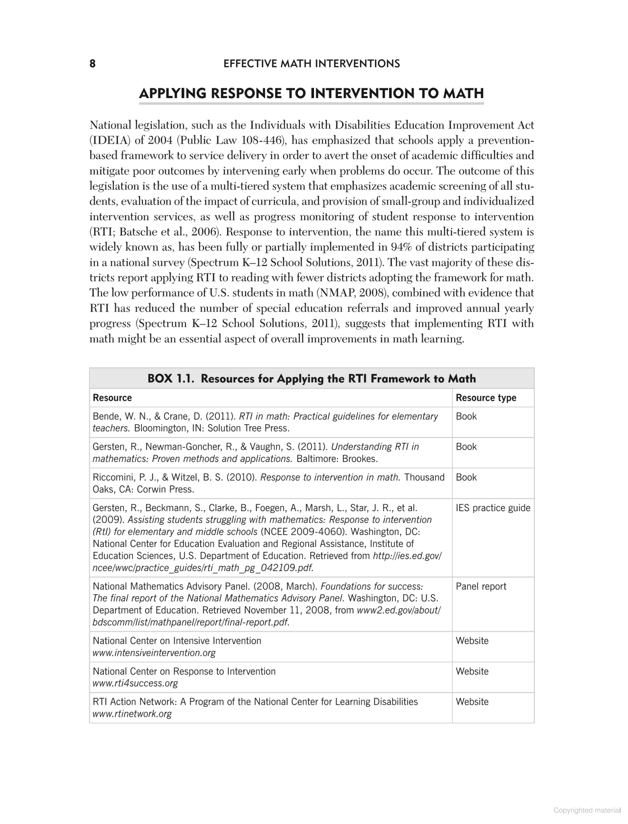 Building foundational whole-number knowledge can help put K-5 students on the path to academic success and career readiness. Filling a gap for school practitioners, this book presents step-by-step guidelines for designing and implementing class-wide, small-group, and individual interventions for mathematics difficulties. Effective procedures for screening, assessment, intervention selection, and progress monitoring are described and illustrated with detailed case vignettes. In a convenient large-size format, the book includes 20 reproducible handouts and forms. Purchasers get access to a Web page where they can download and print the reproducible materials.