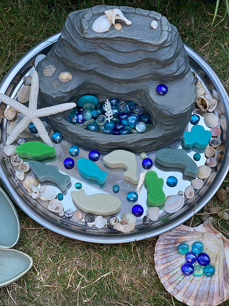 Tell stories from the ocean deep with these appealing animal stones. They will inspire curiosity and conversation as you create small world ocean habitats for watery adventures and use as a springboard for learning more about these amazing sea creatures and the challenges they face. Made from a durable stone mix, they are tough enough to be used in water and sand, making them perfect for outdoor small world play.