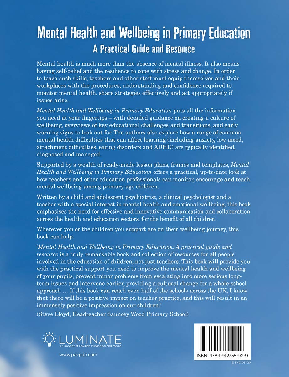 Mental health is far more than the absence of illness - it also means having self-belief and the resilience to cope with stress and change. In order to teach such skills, teachers and other staff must equip themselves and their workplaces with the procedures, understanding and confidence required to monitor mental health, share concepts effectively, identify warning signs and act appropriately if issues arise. Mental Health and Wellbeing in Primary Education puts all the information they need at their fingertips - with detailed guidance on creating a culture of wellbeing, overviews of how a wide variety of common mental health problems are diagnosed and managed, warning signs to look out for, and a range of ready-made forms, exercises and lesson plans
