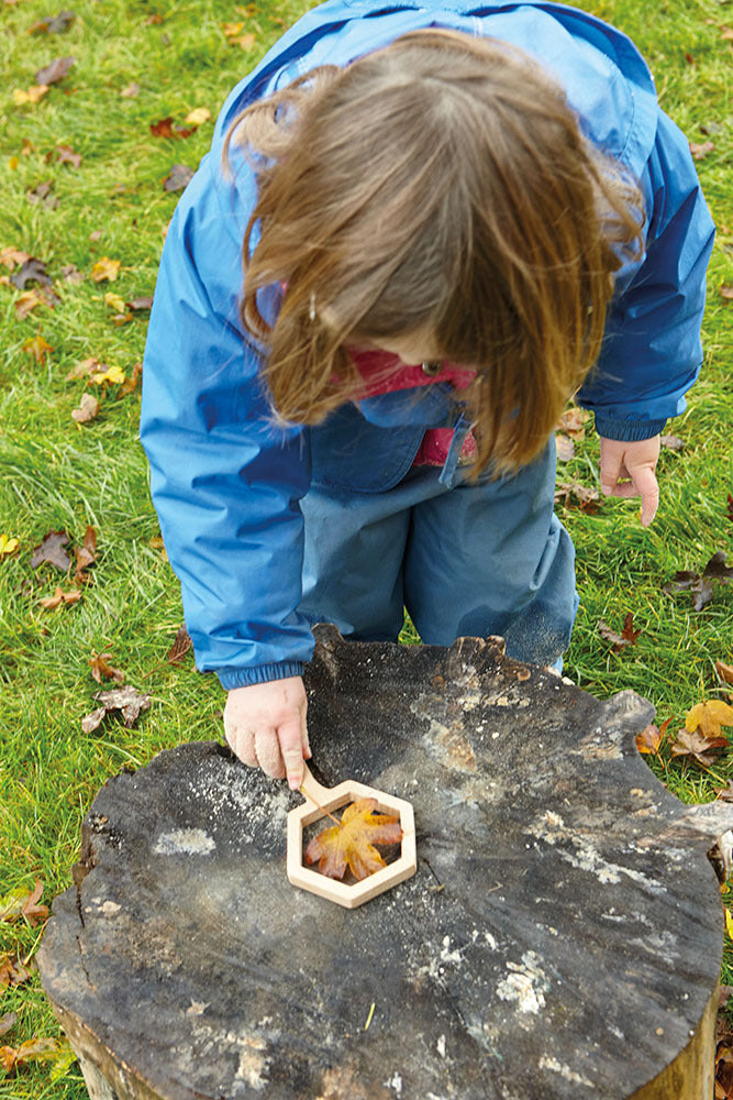 This enticing set of five beech wood viewers will inspire children to explore their environment with new enthusiasm and focus. Encourage children to use them around the setting to find items of a similar shape or to focus attention on things they choose to investigate. The viewers are designed to frame a particular item or area in the natural world and will enable children to really look at the detail. How many colours can they see in the tree bark? How would they describe the shapes on a leaf? How many spots does the ladybird have? This will in turn promote language development and concentration skills. The set includes circle, square, rectangle, triangle, and hexagon. Viewers measure approx. 160mm tall and are made from sustainably-sourced FSC approved wood.