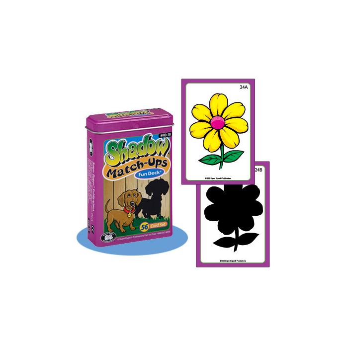 The Shadow Match-Ups Fun Deck contains 56 cards that will stimulate and motivate students to hone their visual awareness skills. The deck has plenty of everyday objects such as a fork, a comb, and a birthday cake topped with candles! Each card has a match that is a shadow of the picture. Students will detect the shape and pattern of the shadow to pair it with the playful picture. What fun! Game ideas too. Cards measure 2½" x 3½" and are stored in a sturdy storage tin.