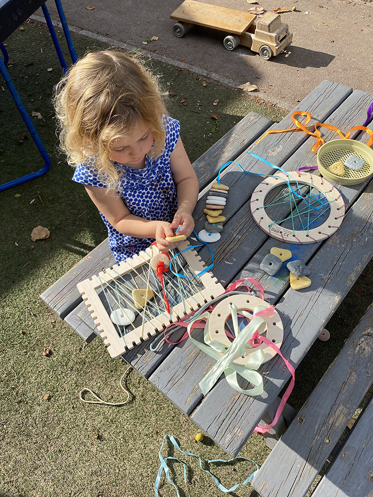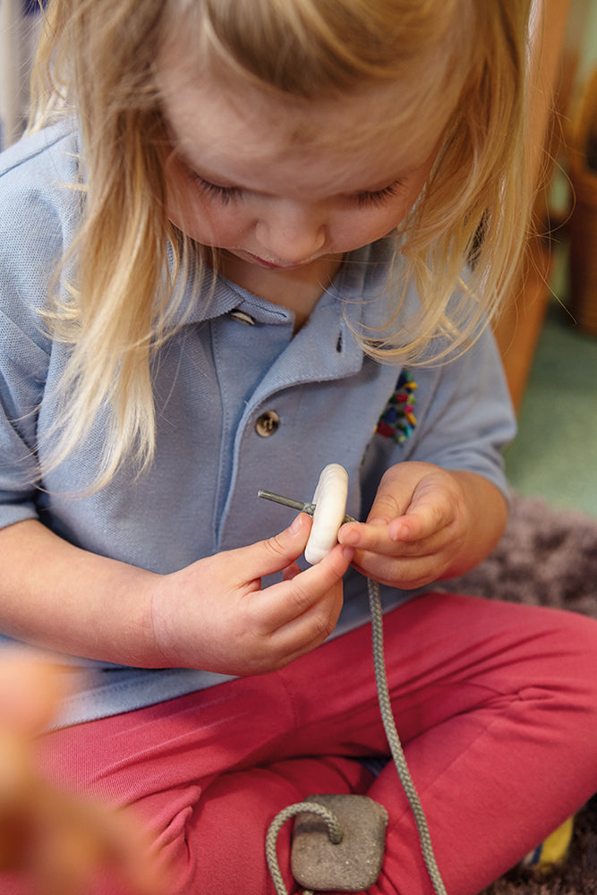 Children love handling stones and these tactile threading pebbles invite sensory play. Develop early counting, sorting, and pattern-making skills, as well as hand-eye co-ordination, as children sort and sequence the stones by shape, colour, and texture. Each set includes 16 threading pebbles in four different shapes, shades, and textures, plus two chunky laces. Pebbles measure 40mm and are made from a stone/resin mix. Laces measure 600mm. Age 2+.